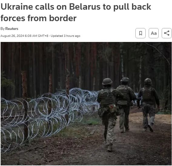 据路透社及“今日俄罗斯”(RT)报道,当地时间8月25日,乌克兰外交部表示, 白俄罗斯已将军队部署到两国边境地区,乌外交部要求白俄罗斯立即撤军,并敦促白方不要犯下“悲剧性错误”。