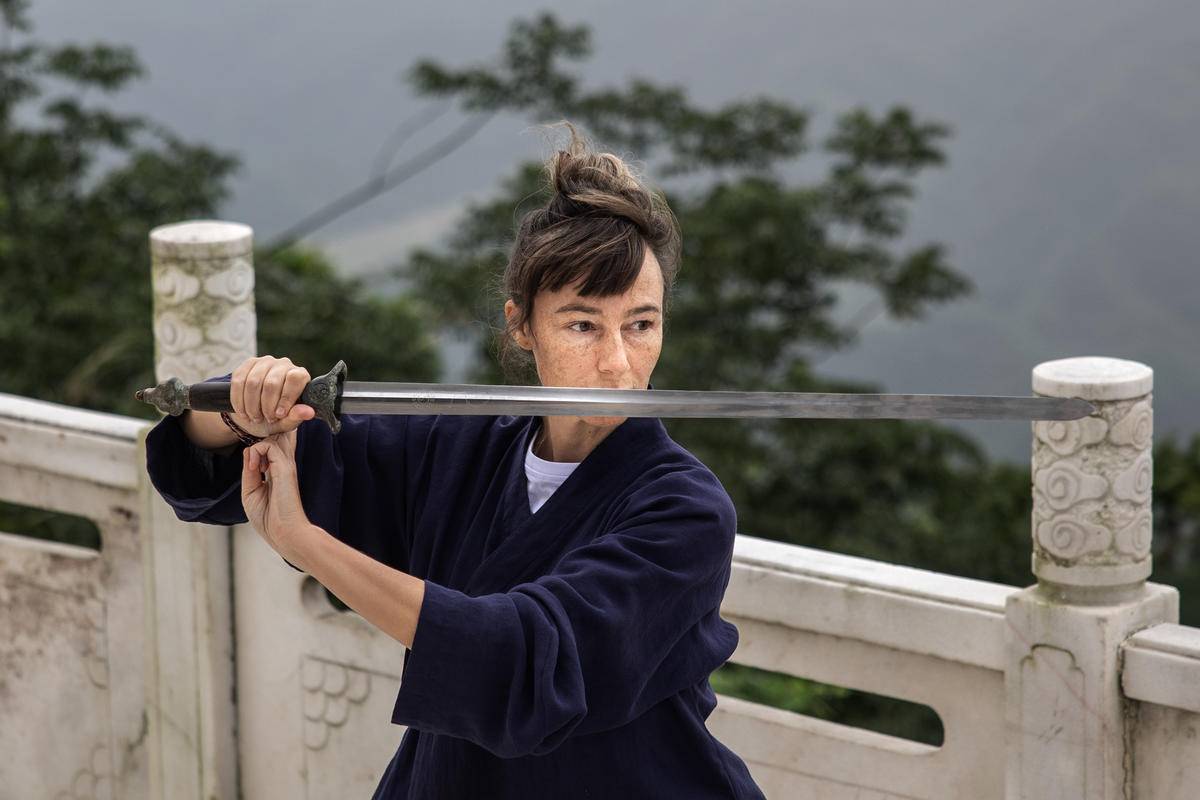 上午8时,在海拔近1000米的天马峰顶,劳拉挥舞着银光熠熠的长剑,一招一式,或飘逸灵动,或雄浑有力。