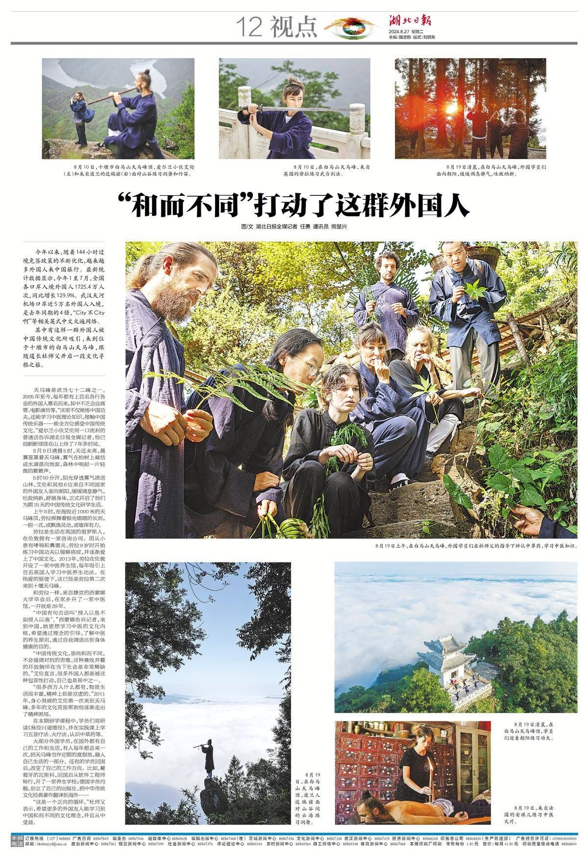 天马峰是武当七十二峰之一。2005年至今,每年都有上百名各行各业的外国人慕名而来,其中不乏企业高管、电影演员等。“这里不仅能练中国功夫,还能学习中医理论知识,接触中国传统乐器……能全方位感受中国传统文化。”爱尔兰小伙艾伦用一口流利的普通话告诉湖北日报全媒记者,他已经断断续续在山上待了7年多时间。