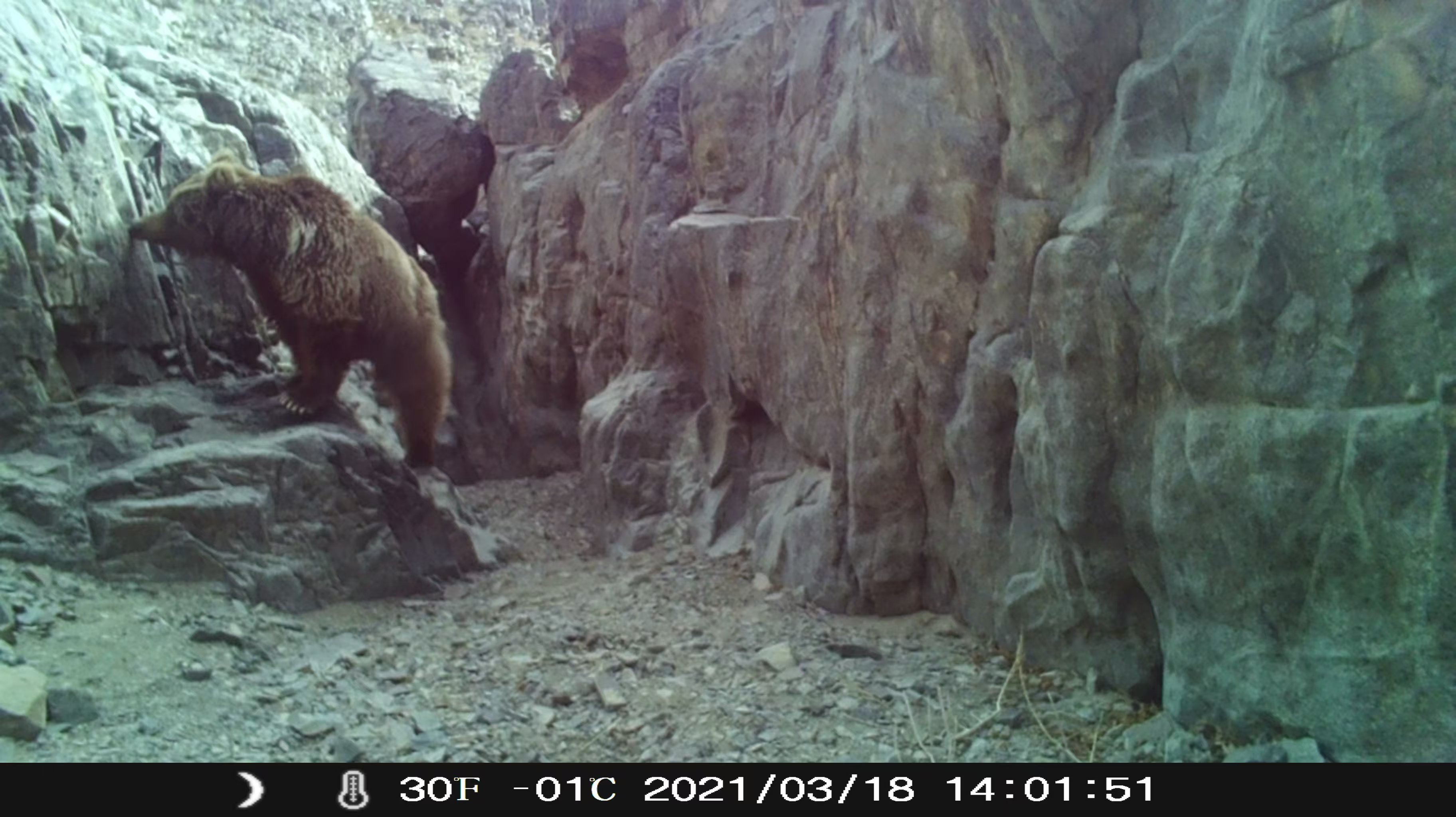 科研团队成员、中国林业科学研究院森林生态环境与自然保护研究所副研究员薛亚东表示,科研团队在新疆伊吾县中蒙边境考察期间,从当地林草部门收集到疑似戈壁熊的影像资料,经过调查,他们发现这些影像来源于伊吾县下马崖乡,该乡与蒙古国大戈壁保护区A区接壤。