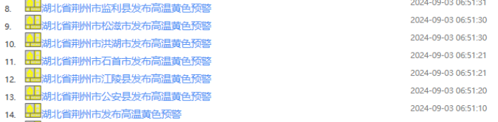荆州多地连发高温黄色预警