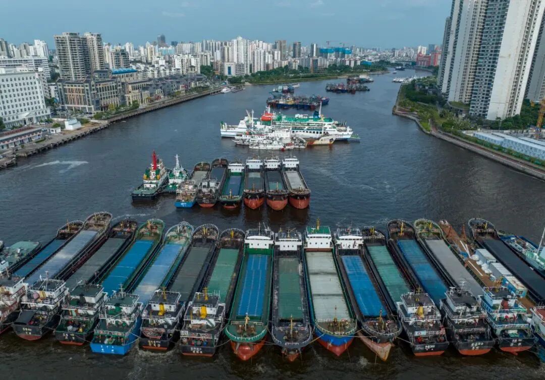 4日,海南海口,众多船只回港避风。