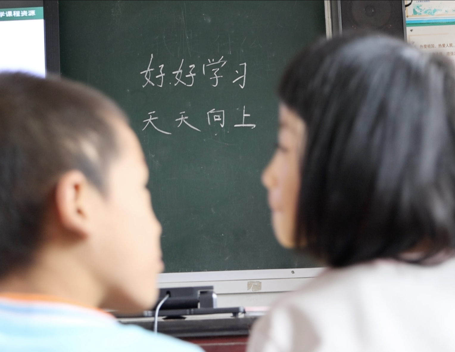 胡益明最后一课在黑板上写下“好好学习,天天向上”