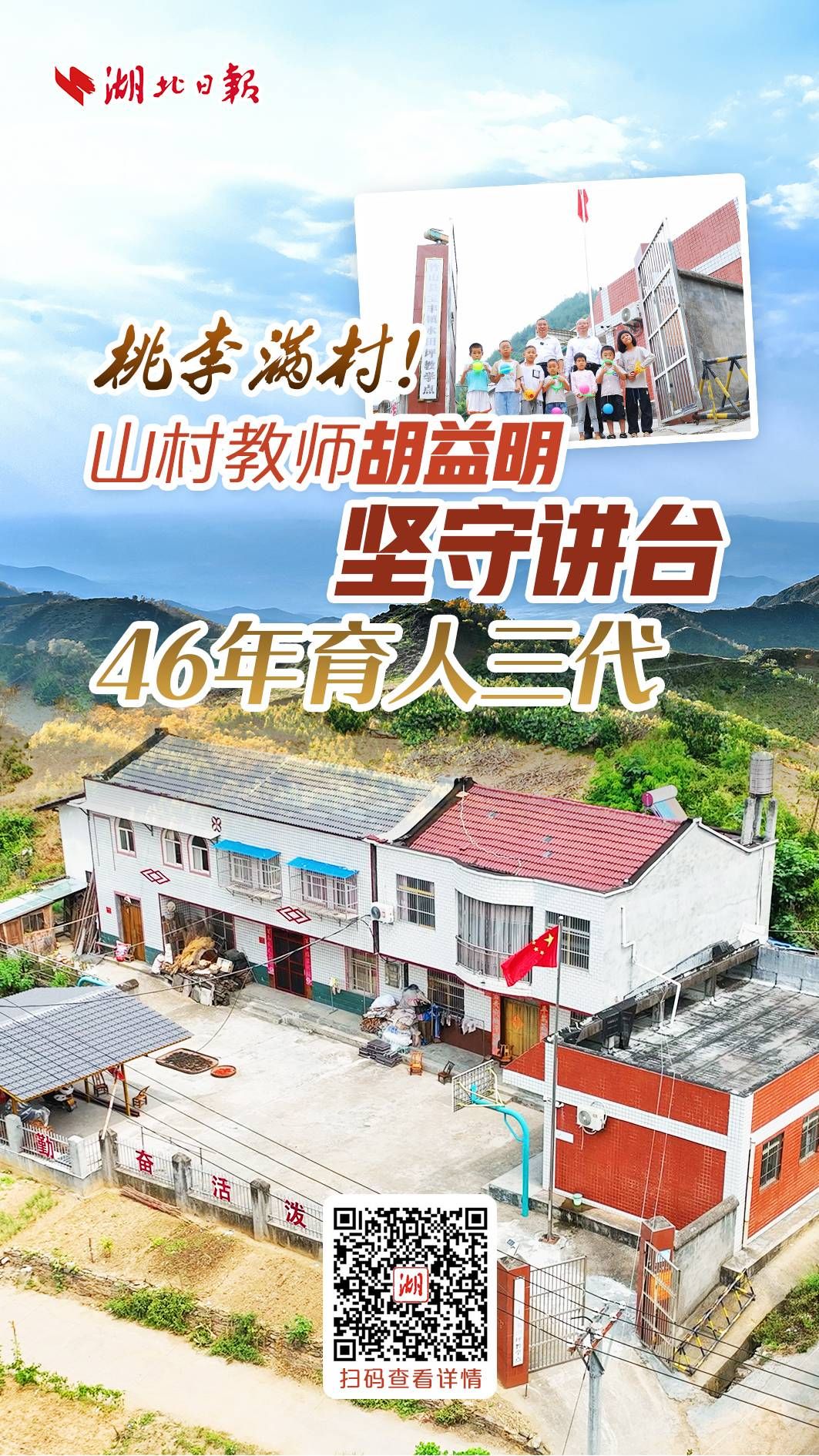 “胡老师言传身教,影响几代人,改变了不少山里娃的命运。”村文书朱勇说,他和孩子都在胡老师手上启蒙,从认识数字,到会写名字,背几首古诗,写一段作文,都是胡老师手把手教的,“我今天可以为村民做点事,孩子能走出大山,都要感恩胡老师。”近5年,水田坪村有30个孩子考上大学,今年6人,去年8人。