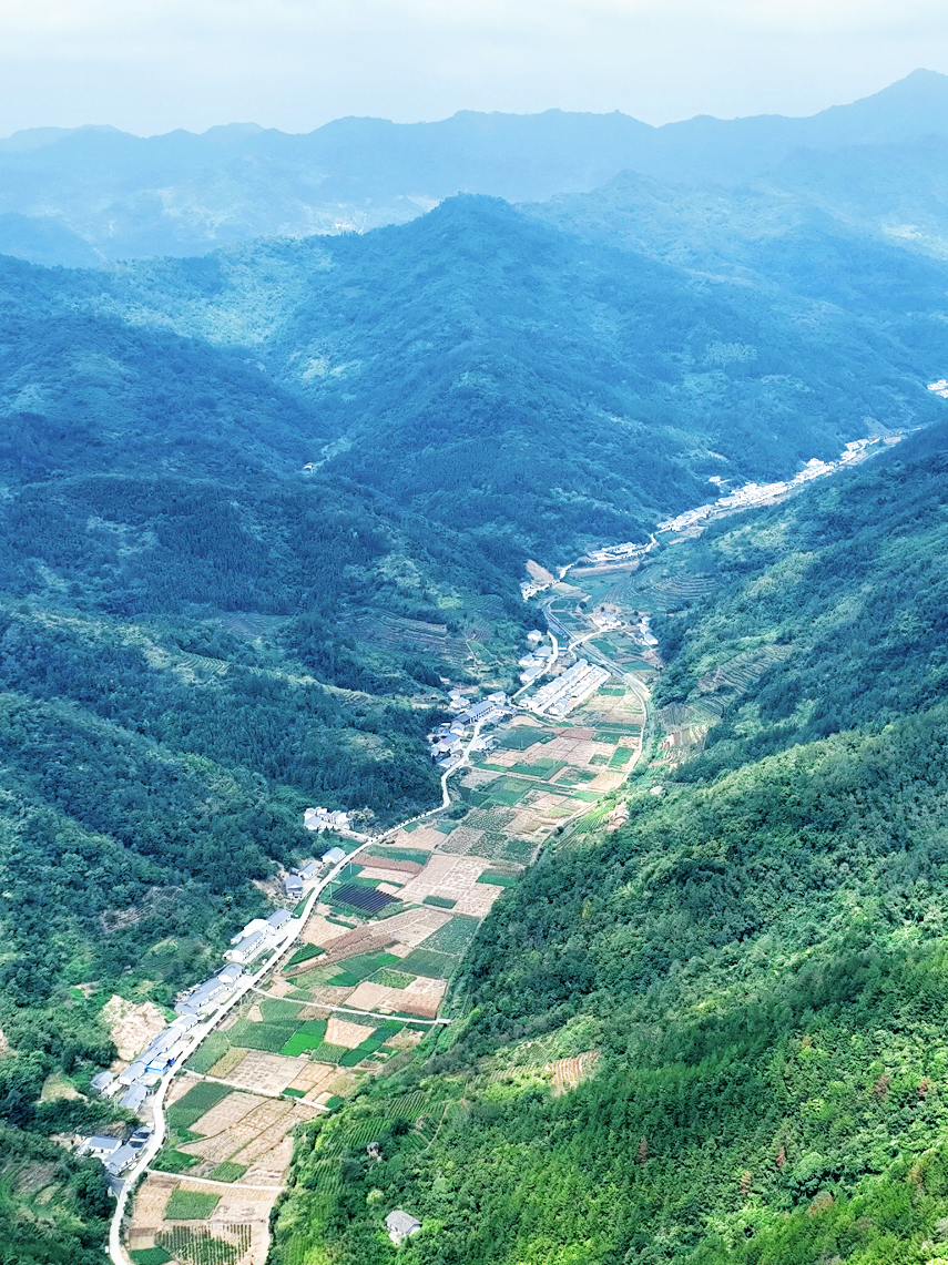 群山环绕中的竹山县水田坪村。