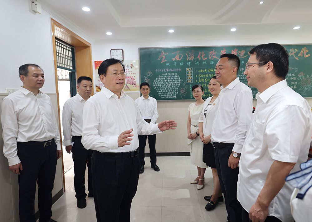 在武昌区中山路小学紫金分校,王忠林察看校园文化展示,详细了解学校教学设施、师资配备、办学特色等情况,对学校深入推进体教融合、促进学生身心健康发展的做法给予肯定。他来到学校教研室,与老师们互动交流,感谢他们甘当园丁、呵护孩子们健康成长的辛勤付出,勉励大家树立“躬耕教坛、强国有我”的志向和抱负,当好大先生,做好引路人,教育学生系好人生第一粒扣子,培养德智体美劳全面发展的社会主义接班人。