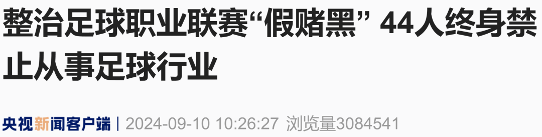 整治足球职业联赛“假赌黑”,44人终身禁止从事足球行业