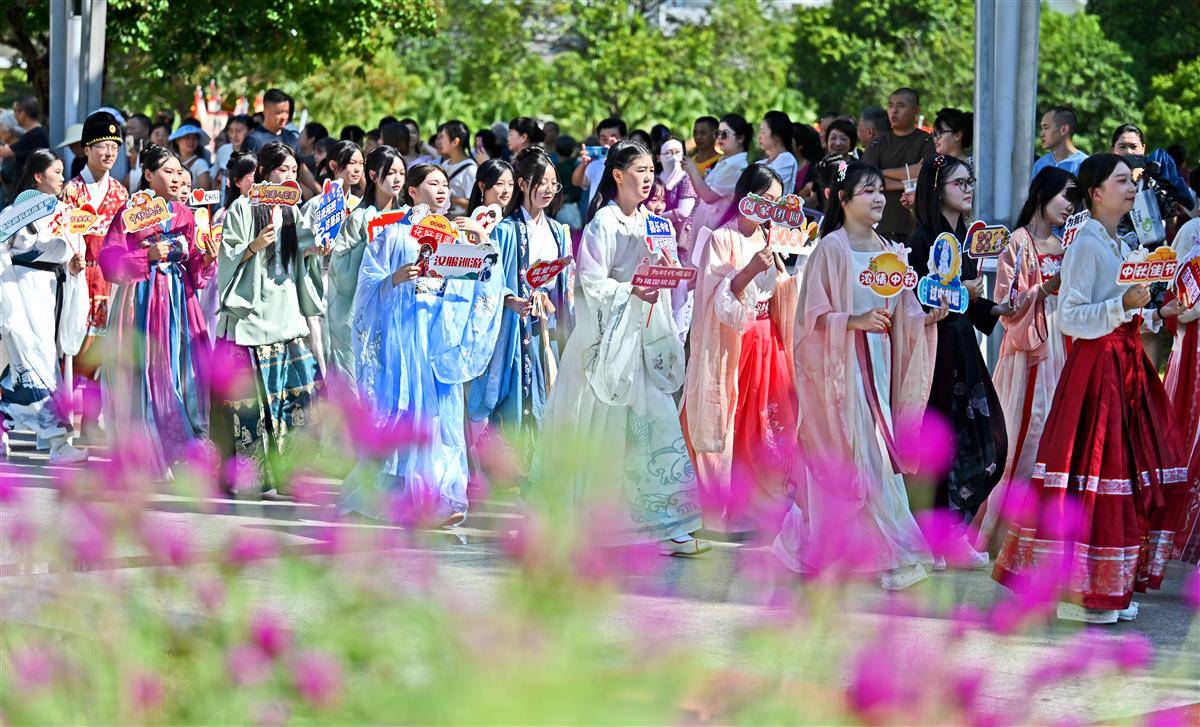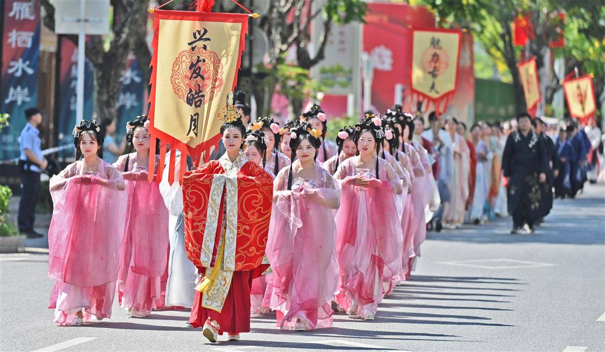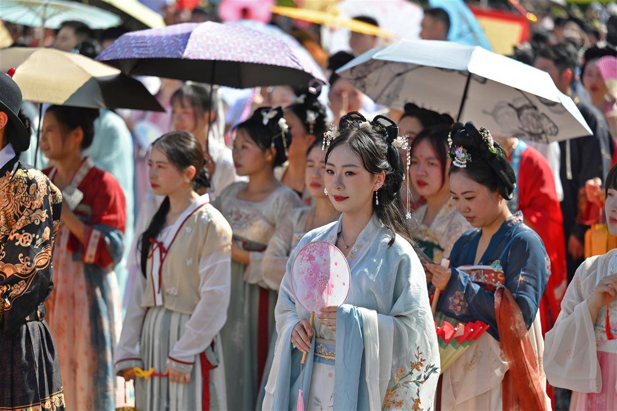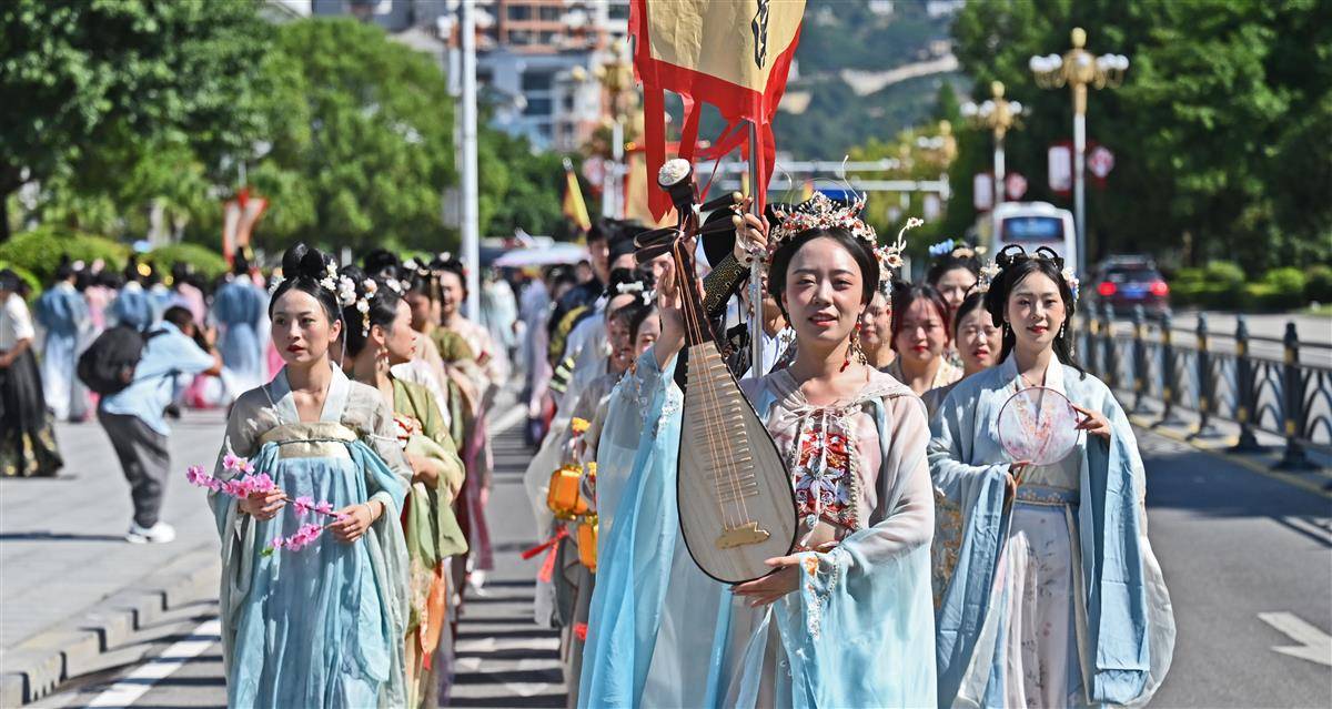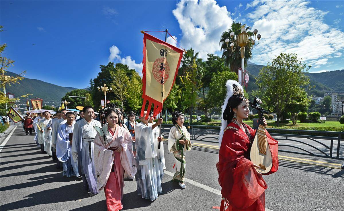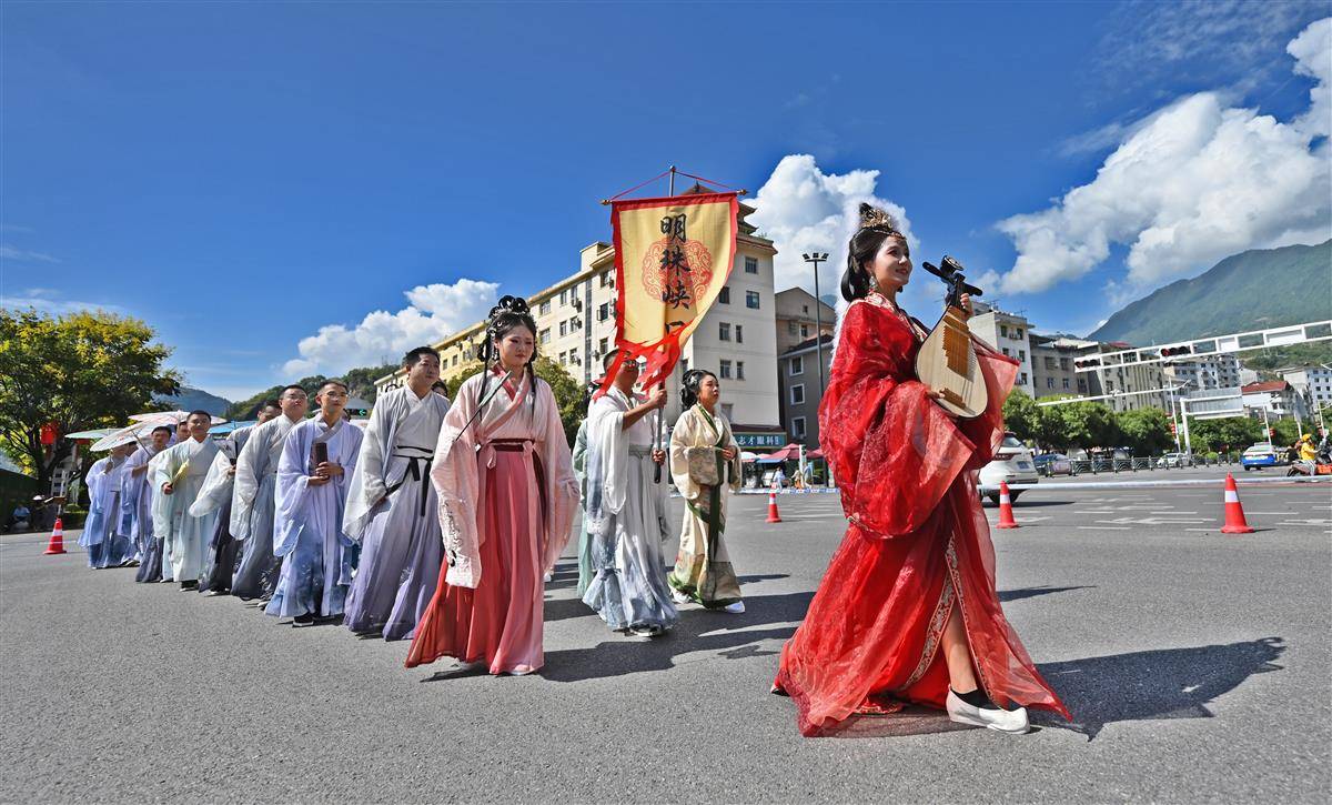 9月13日,昭君故里兴山县的香溪河畔,衣袂飘飘的少男少女身着汉服,手持团扇或宫灯,在典雅的古乐声中缓缓走出,恍若千年前的昭君与乡亲迎面而来。当天,兴山数千青年,身着汉服,在香溪边巡游,由此拉开了今年中秋旅游季忆昭君系列文旅活动的大幕。“屈原昭君故里”非遗之旅是湖北唯一入选国家级旅游项目,以昭君文化铸魂,兴山县着力发展乡村“美丽”经济,昭君村、昭君别院、昭君原野、昭君望乡……