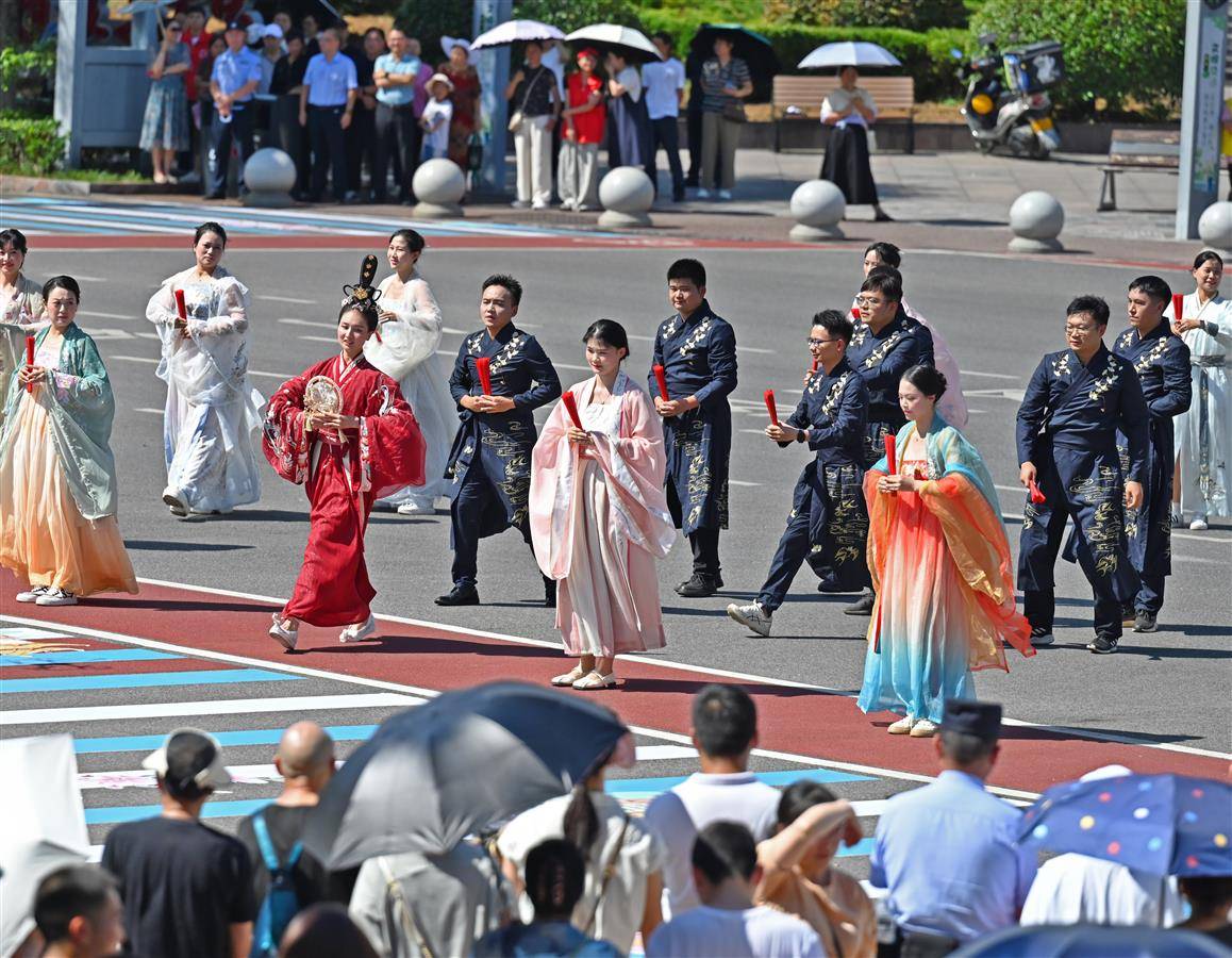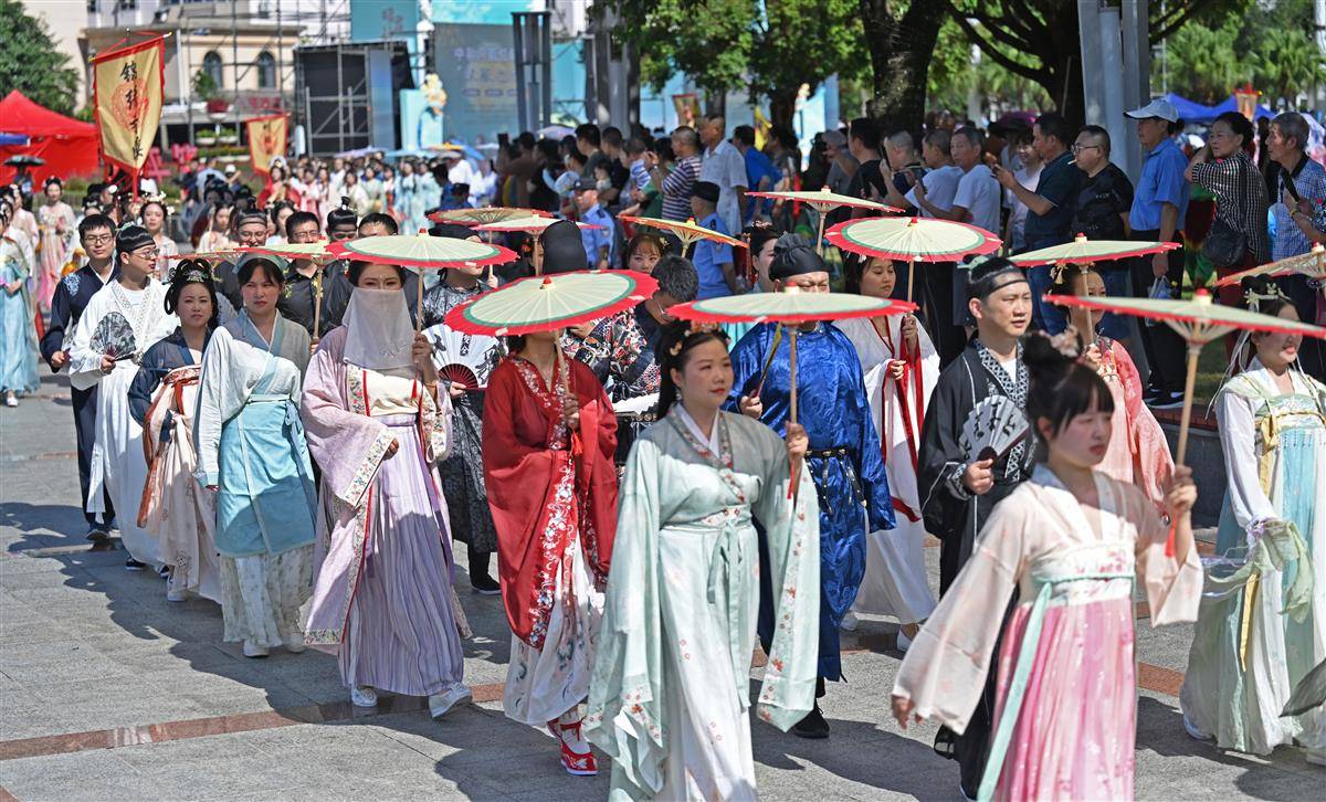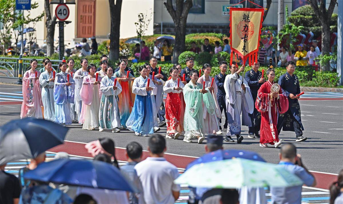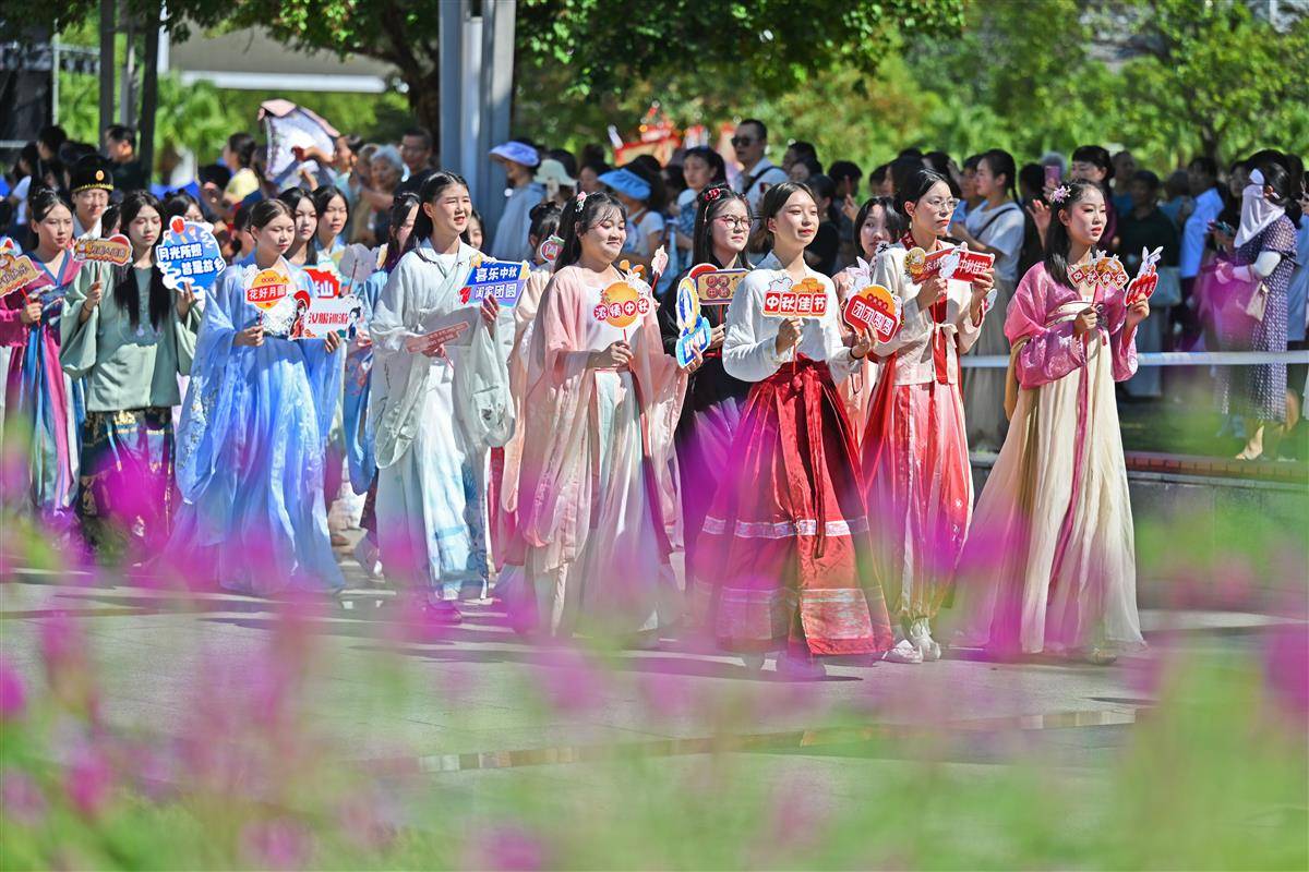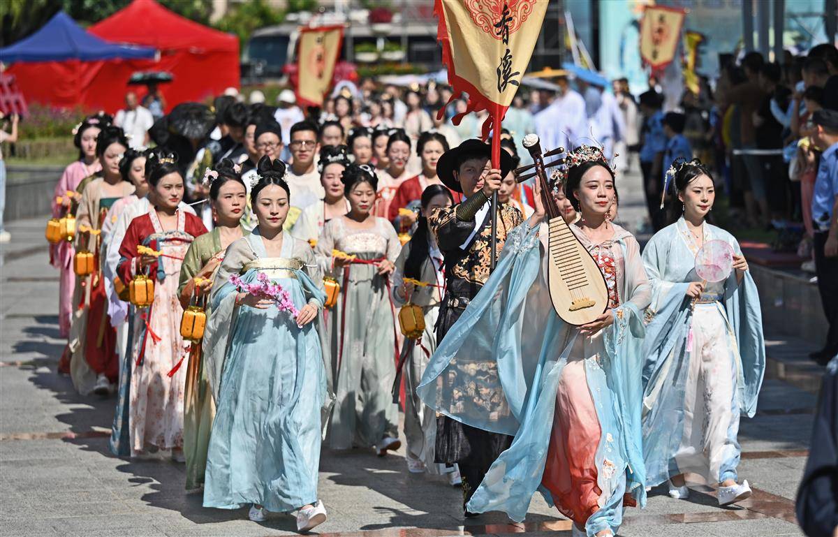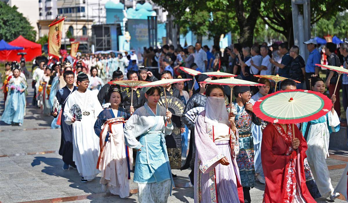 9月13日,昭君故里兴山县的香溪河畔,衣袂飘飘的少男少女身着汉服,手持团扇或宫灯,在典雅的古乐声中缓缓走出,恍若千年前的昭君与乡亲迎面而来。当天,兴山数千青年,身着汉服,在香溪边巡游,由此拉开了今年中秋旅游季忆昭君系列文旅活动的大幕。“屈原昭君故里”非遗之旅是湖北唯一入选国家级旅游项目,以昭君文化铸魂,兴山县着力发展乡村“美丽”经济,昭君村、昭君别院、昭君原野、昭君望乡……