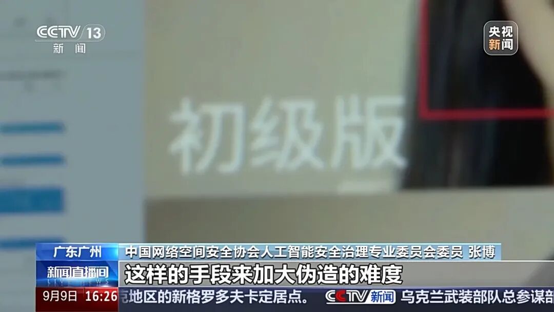 中国网络空间安全协会人工智能安全治理专业委员会委员 张博:可以通过人工智能检测技术来识别视频的真实性,是不是有伪造的内容。另外也可以结合身份认证、数字水印的手段来加大伪造难度。从管理方面,需要加快相关法律法规以及监管措施的制定和落实,来规范AI应用的使用方式和应用场景。