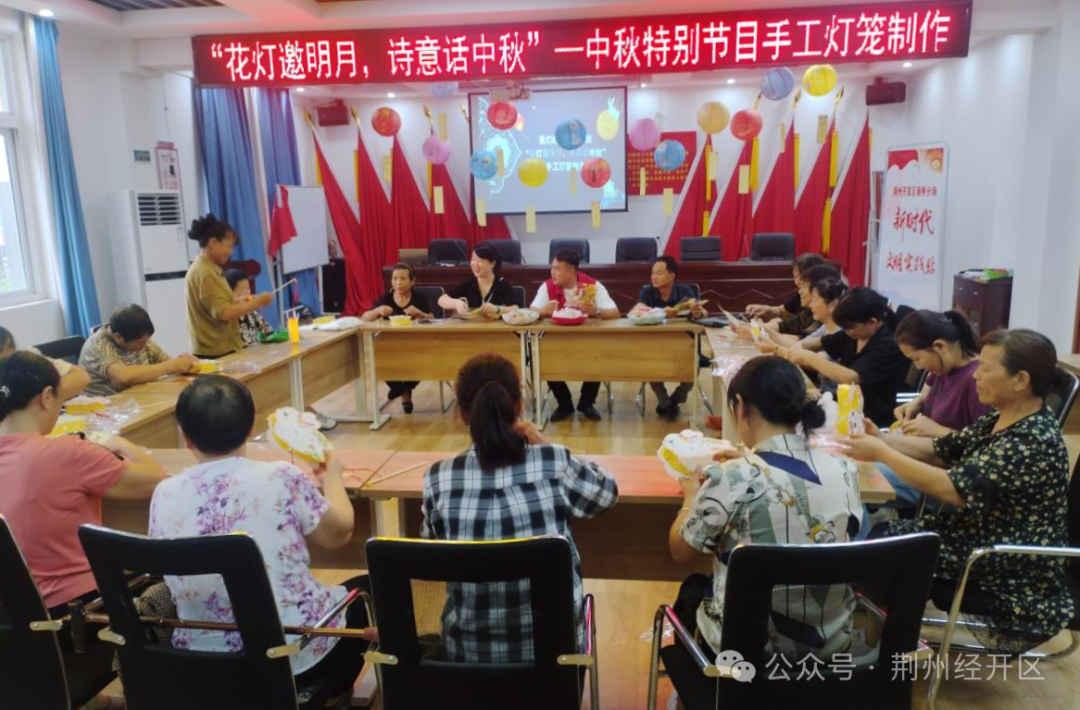 南桥分场新时代文明实践站举行“花灯邀明月,诗意话中秋”手工灯笼制作活动,居民们一起做灯笼、猜灯谜,其乐融融。