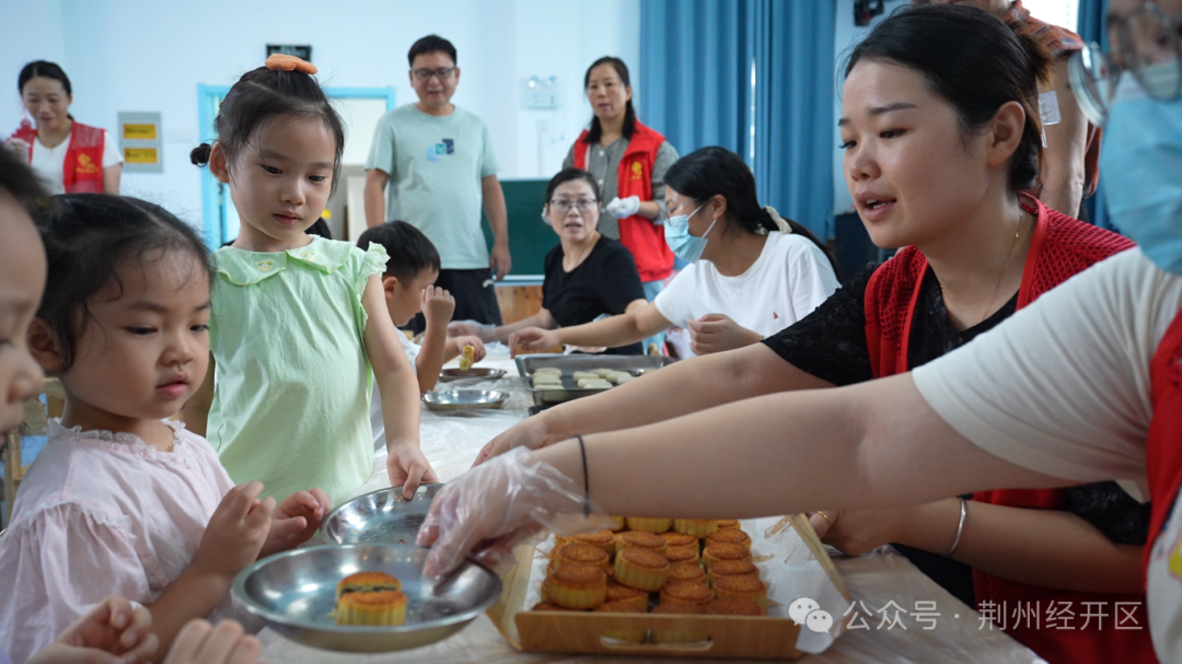 南港河社区新时代文明实践站、渔龙桥社区联合辖区幼儿园,带领孩子们制作月饼,在快乐中学习传统文化。