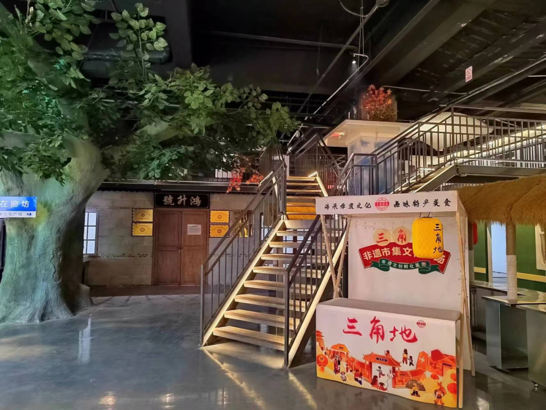 三角地市集文化休闲广场位于廊坊市广阳区建国道金三角空中花园中心商场,由廊坊市泰禾丰农产品市场服务有限公司投资,廊坊市市集文化传播有限公司负责运营。项目利用地处廊坊商业发源地“老三角地”的先天地理位置优势,将“非遗产品”“乡村振兴”“文化旅游”有机的结合起来,以“老三角地情景再现”的方式为廊坊市民提供一个沉浸式的独具廊坊特色的探寻传统非遗、休闲娱乐、美食餐饮、旅游交友的“非遗市集文化“体验空间。