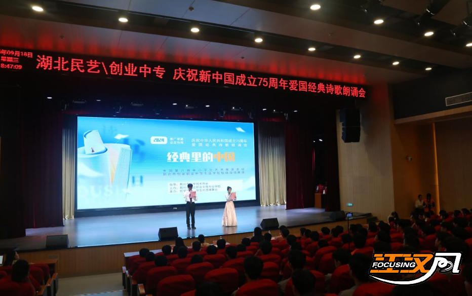 江汉风报道:9月份的第三周为全国推广普通话宣传周,为加大推普力度,筑牢强国语言基石,全面落实立德树人根本任务,弘扬中华优秀传统文化和红色文化,培育践行社会主义核心价值观,坚定学生爱国主义情感,9月18日,培育和践行社会主义核心价值观——“经典里的中国”爱国诗歌朗诵会在科普教育基地市创业学校开展。本次展演由荆州市科学技术协会指导,学校学工处团委主办,校学生会和学生社团联合理事会联合承办。
