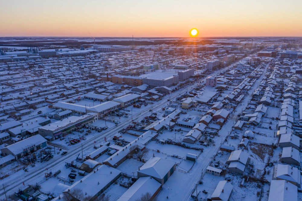 这是2019年12月18日拍摄的黑龙江省抚远市寒葱沟镇红旗村一角(无人机照片)。新华社发(谢剑飞 摄)