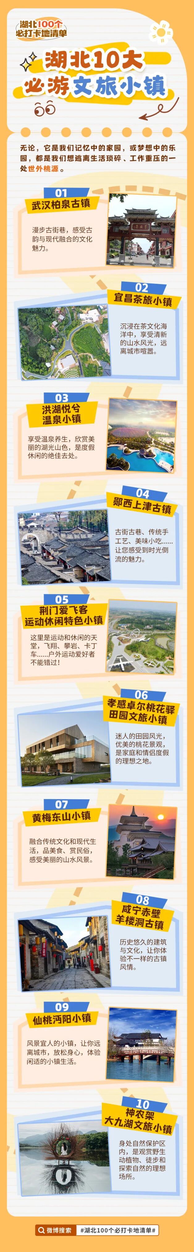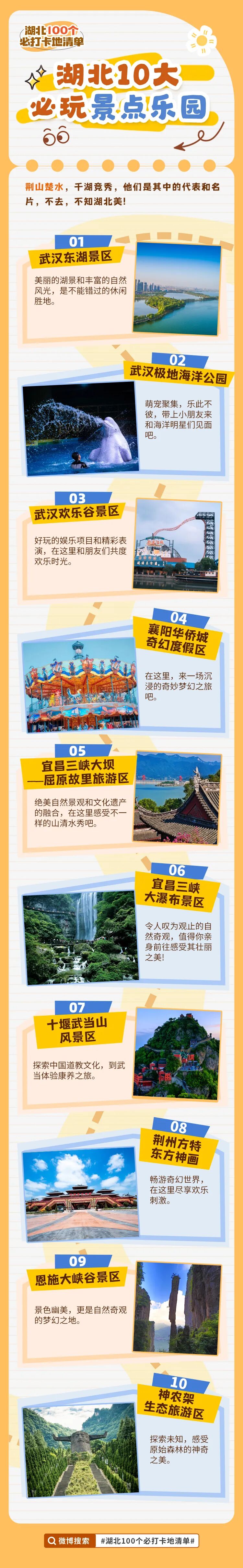 国庆将至,想好去哪儿游玩了吗?湖北文旅为大家精心准备了一份礼物——《湖北100个必打卡地清单》重磅发布!这不仅仅是一份清单,更是一张开启湖北魅力之旅的神奇地图。从历史悠久的文化古迹,到风光旖旎的自然景观;从充满烟火气的市井小巷,到令人惊叹的人文景观。湖北的每一个角落都蕴藏着独特的魅力,等待着您去发现和探索。