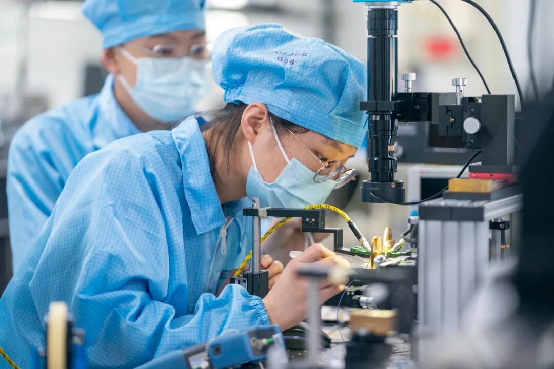国家信息光电子创新中心无尘实验室内,工程师对芯片进行性能初测及筛选。(湖北日报全媒记者 魏铼 摄)