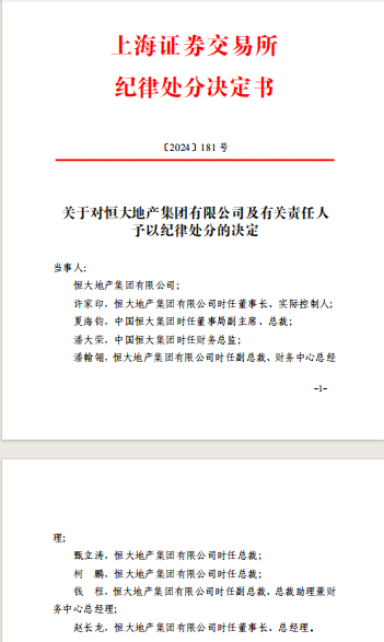 恒大地产及许家印等有关责任人