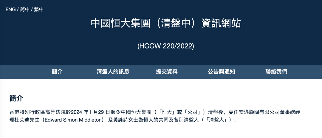 中国恒大清盘人推出新网站:
