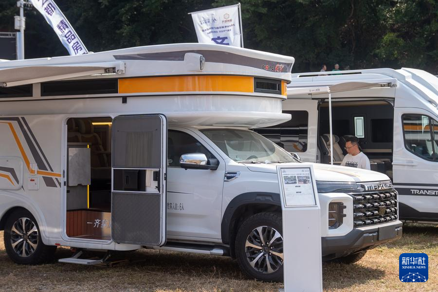 9月28日,参观者在户外运动装备展上参观房车。新华社记者 杜子璇 摄