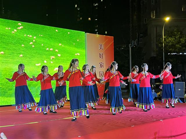 晚上6点30分,《江汉风》社区大联欢活动在开场舞《唱支山歌给党听》中正式开始,活动现场更是有川剧变脸、茶艺表演、广场舞等精彩的节目,引得台下掌声不断。