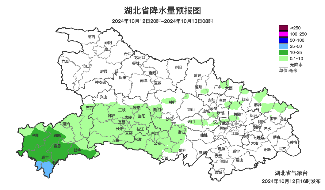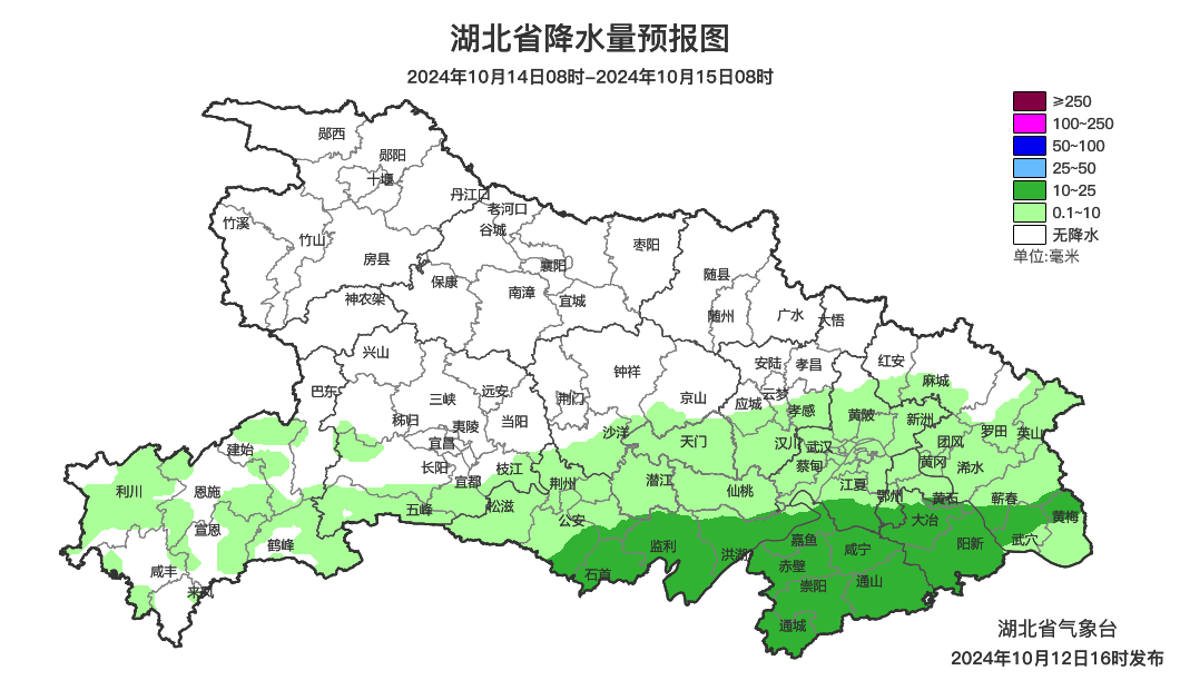 预报来源:湖北省气象台2024年10月12日16时预报