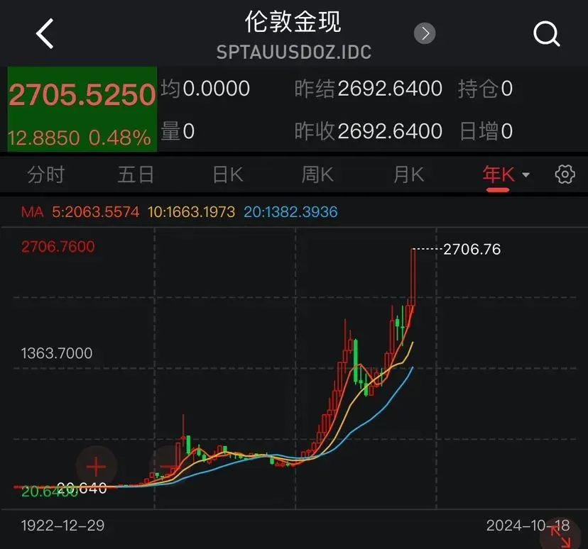 10月18日,COMEX黄金也再次创下历史新高,最高触及2720美元每盎司。
