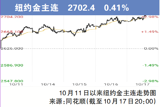 截至10月17日,纽约金主连今年累计涨幅高达30%。