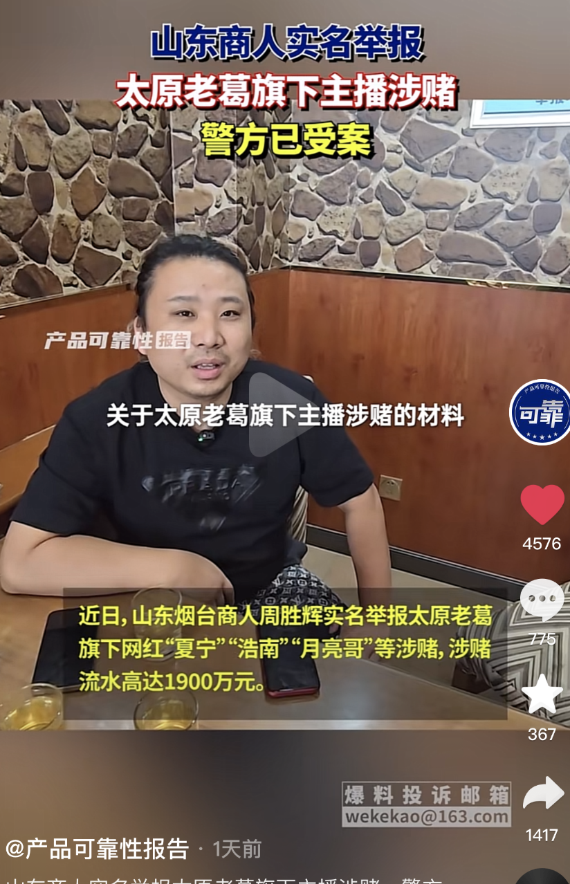 近日,接到举报线索,太原老葛旗下主播“夏宁、浩南、月亮哥、刘二狗“等涉嫌组织并参与赌博活动,上述主播在快手有超过千万的粉丝。