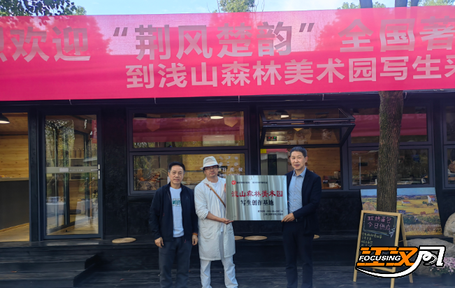 江汉风报道:金秋十月,秋风送爽。10月24日下午,荆州画院、荆州市美术家协会浅山森林美术园写生创作基地挂牌仪式在荆州区八岭山镇浅山森林美术园举行。著名画家,中国美协会员,中国艺术研究院写意画院导师熊晓东;著名画家,中国美协会员,中国花鸟画研究院副院长,北师大首届中国画高研班导师潘晓云等10多名艺术家共同参加挂牌仪式。