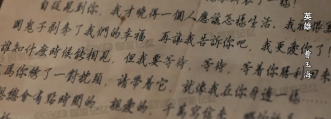 曹玉海未婚妻写给曹玉海的信。来源:CCTV国家记忆
