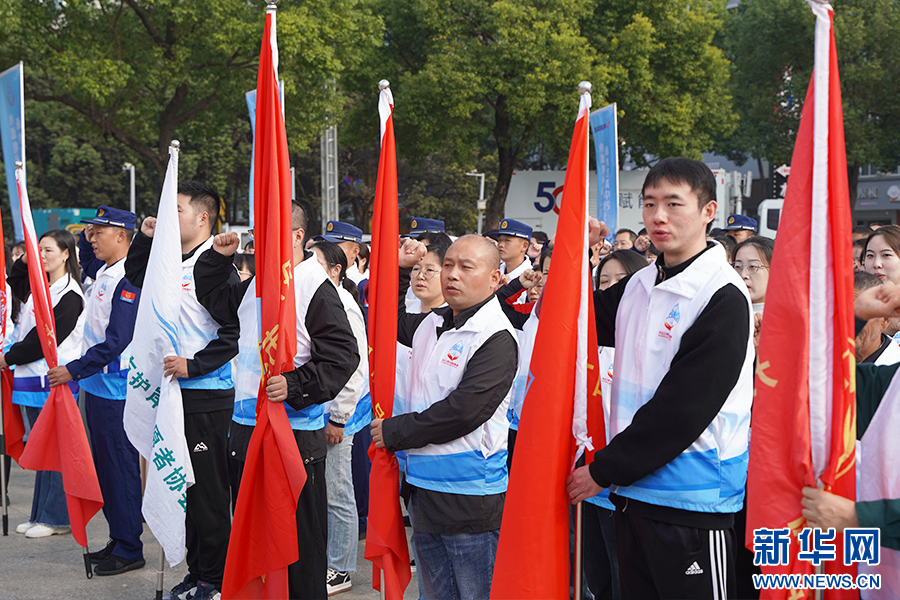 图为“小水滴”守水护水志愿者现场宣誓。新华网 陈周璇摄