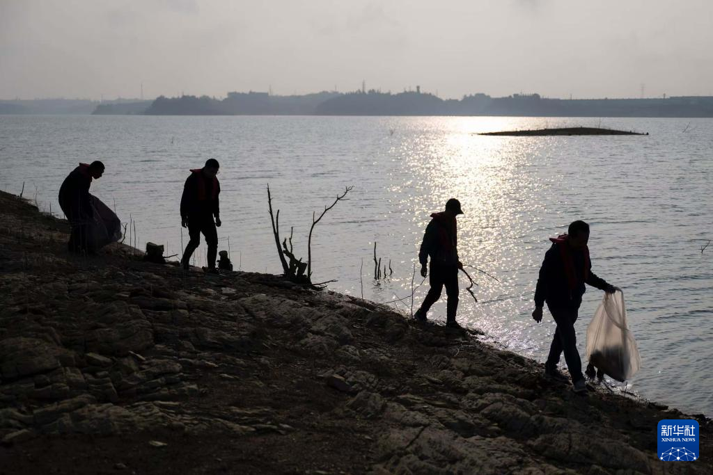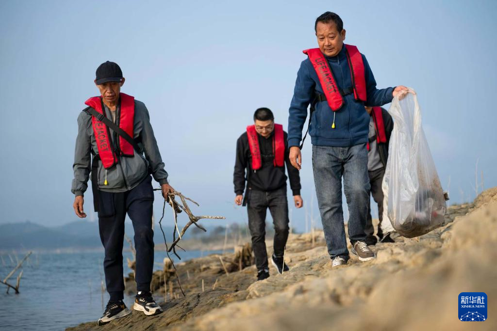 清漂志愿者在丹江口水库作业(2024年10月28日摄)。新华社记者伍志尊 摄