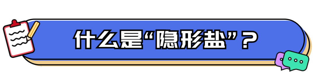 “隐形盐”指酱油、酱类、咸菜以及一些高盐食品中看不见的盐。高盐食品指钠含量≥800mg/100g的食品,其中每400mg钠相当于1g盐。例如10ml酱油含有约1.6g盐、10g豆瓣酱含有约1.5g盐。此外,有些食品在制作时除了食盐,还会加入碳酸氢钠等钠盐,也会额外增加我们的钠摄入量。