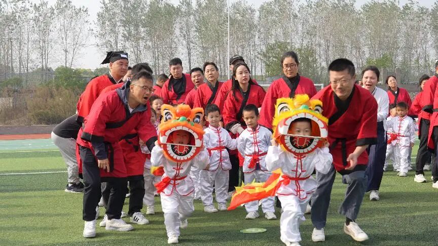 活动正式开始。在老师的引导下,300余名师生家长有序在操场集合,伴随着激昂的鼓点,由爸爸团们给大家带来了精彩的节目——舞龙,现场气氛迅速升温。伴随着温柔的秋风,暖暖的阳光,跟着音乐的律动,大朋友和小朋友跳出了快乐,跳出了童真。阳光下,做游戏,在集体活动中增进彼此的情感交流,一起享受这份秋天的快乐!