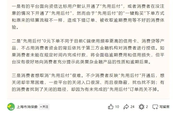近期纷纷默认开启“先用后付”功能