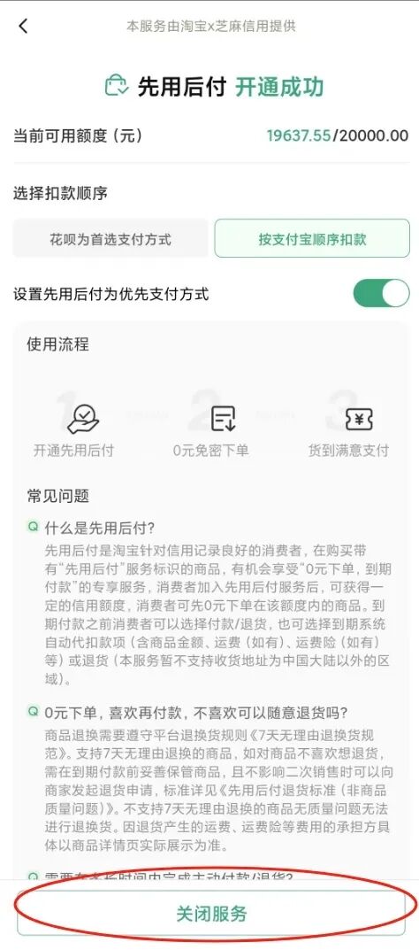 step 3.先用后付设置