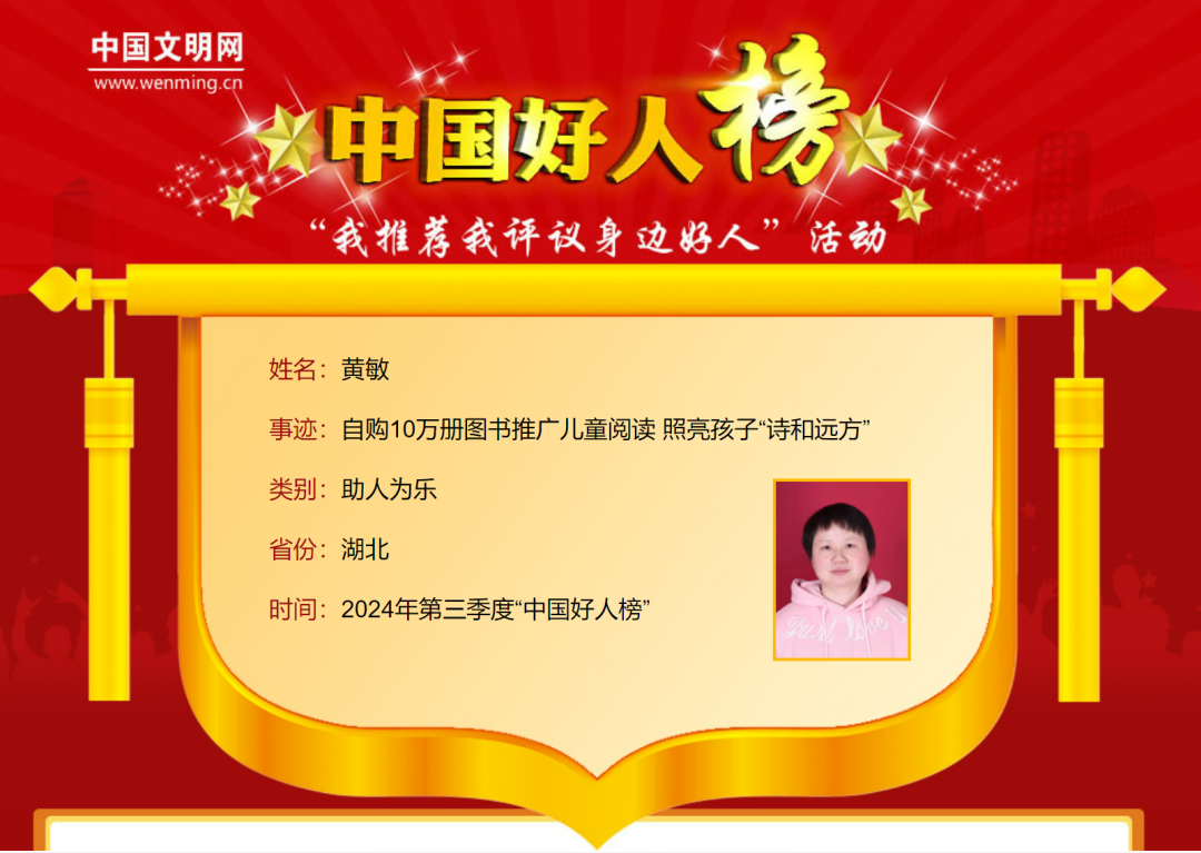 黄 敏:自购10万册图书推广儿童阅读 照亮孩子“诗和远方”(仙桃市)