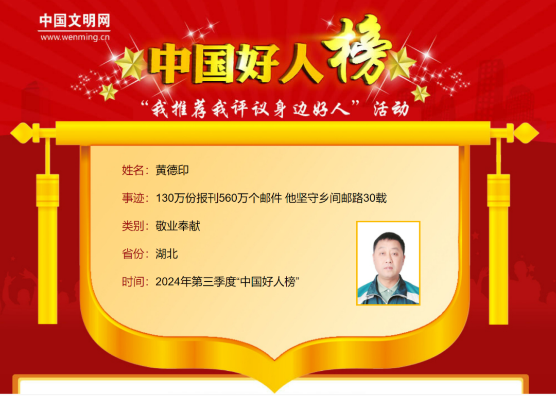 黄德印:130万份报刊560万个邮件 他坚守乡间邮路30载(襄阳市)
