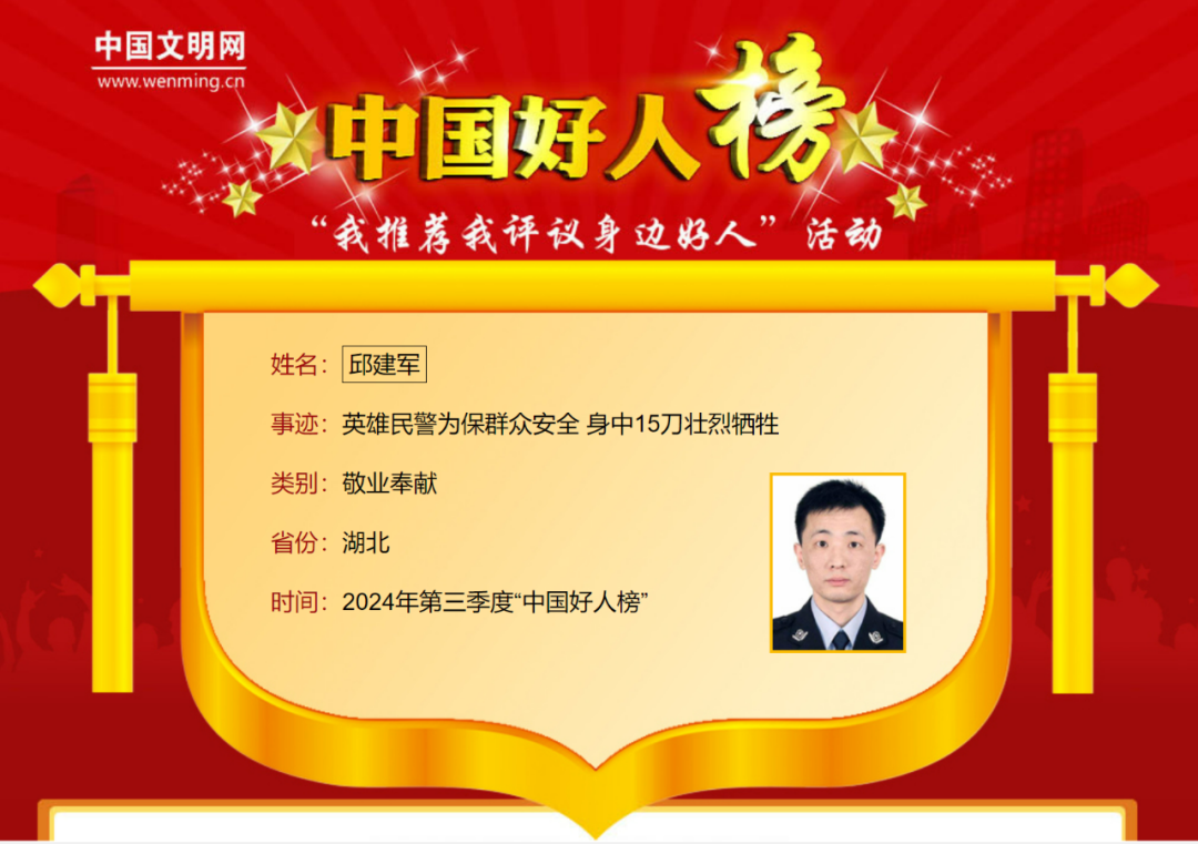 邱建军:英雄民警为保群众安全 身中15刀壮烈牺牲(武汉市)