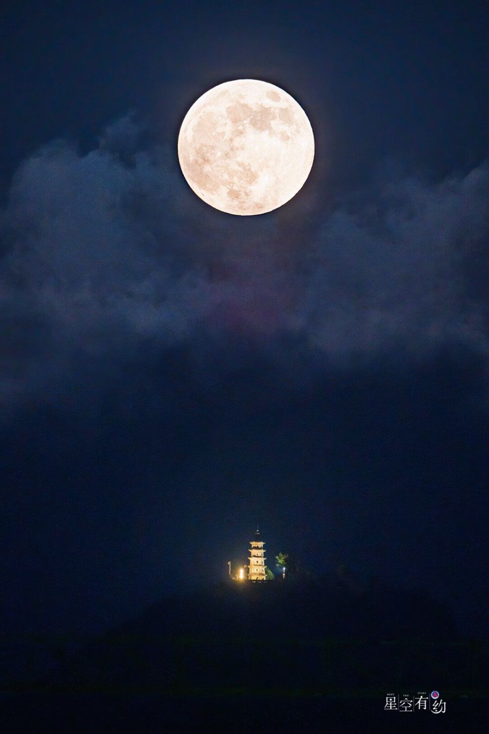 2024年9月17日晚在陕西省西安市骊山烽火台拍摄的“超级月亮”。(薛飞摄,星联CSVA供图)
