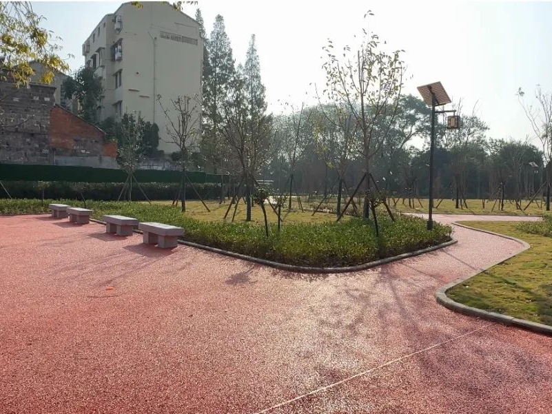 在爱民路与南门大街的西南角可以看到,这里原先杂草丛生、破乱不堪,为充分满足群众需求,同时结合5A级旅游景区创建要求,将此处改造成了口袋公园。公园里种植了各种花卉、树木,备有花境汀步、健身器材、城市人行步道、花箱座椅及树池座椅,在高差之处设置台阶,细节之处更多考虑便民性、实用性。同时将传统文化融入景观座椅、灯具等城市家具中,与周边古城历史建筑相辉映,拓展了城市绿色空间,一改往日脏、乱、差的形象,为附近居民休闲健身提供了新去处。