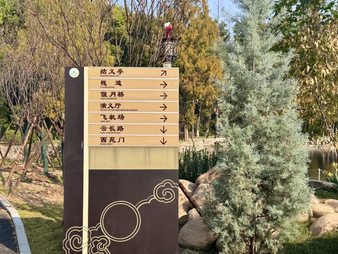 该口袋公园红线面积为2860平方米,新增绿地面积980平方米,园路铺装822平方米,在设计上也更加突出地域特点、历史文化等因素,将三国公园串联至环古城旅游线路之中,游客出行可由内环路进入三国公园,在三国公园游览后由南门进入博物馆参观。