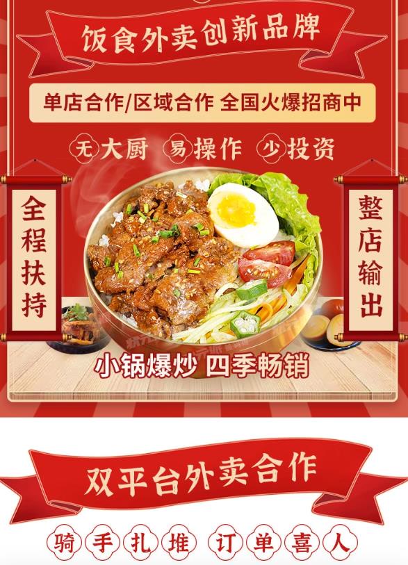 像马克这样的角色,就是外卖行业的幕后操盘手。记者以创业者的身份,在搜索引擎寻找时下流行的几个外卖品类——炒饭炒面炒粉、小碗菜、老饭盒等,迅速蹦出相关的加盟页面。“无需大厨,无需经验。”“两人开店,三十秒出餐。”“骑手扎堆,订单喜人。”页面上还有菜品花里胡哨的展示照片,与外卖App上商家展示的照片高度一致。