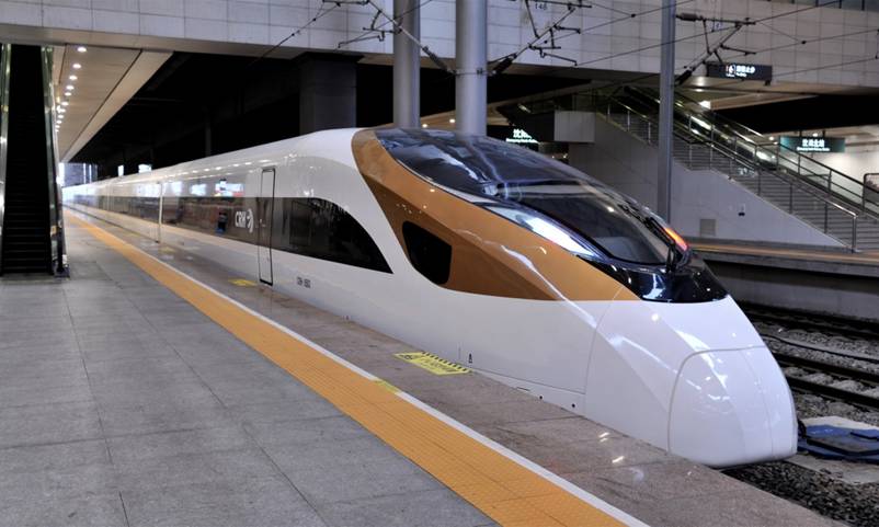 △ 中车青岛四方机车车辆股份有限公司研制的CR400AF型中国标准动车组