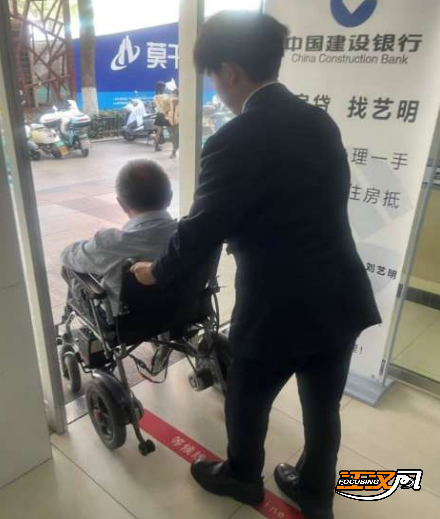 江汉风报道:近日,建设银行凤凰支行上演了一幕温馨的服务场景。一位八旬的残疾老人独自缓慢行至该行营业厅门口时,因行动不便显得有些无助。然而,他很快就被银行工作人员的热情服务所包围。