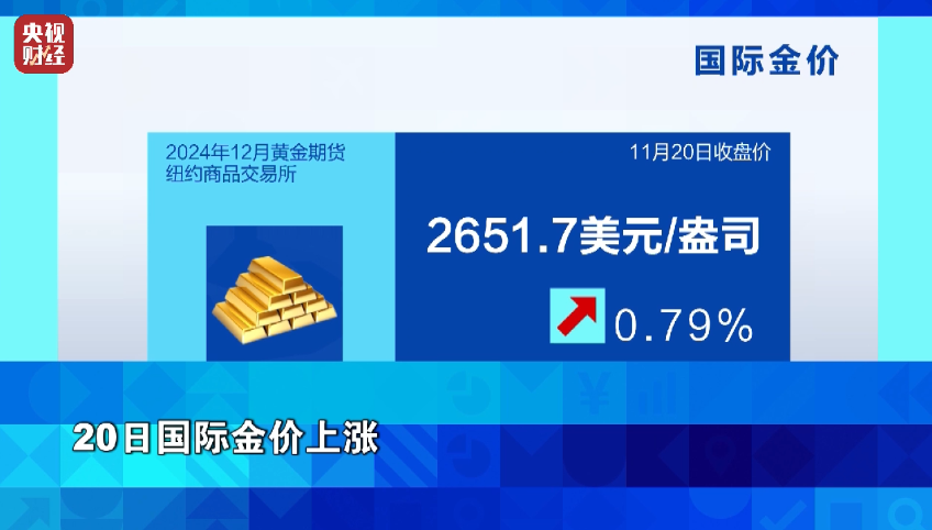 据央视财经,投资者密切关注东欧紧张局势进展,避险情绪较为浓厚,国际金价周三连续第三个交易日上涨。截至收盘,纽约商品交易所12月黄金期价收于每盎司2651.7美元,涨幅为0.79%。今日各品牌金店黄金价格