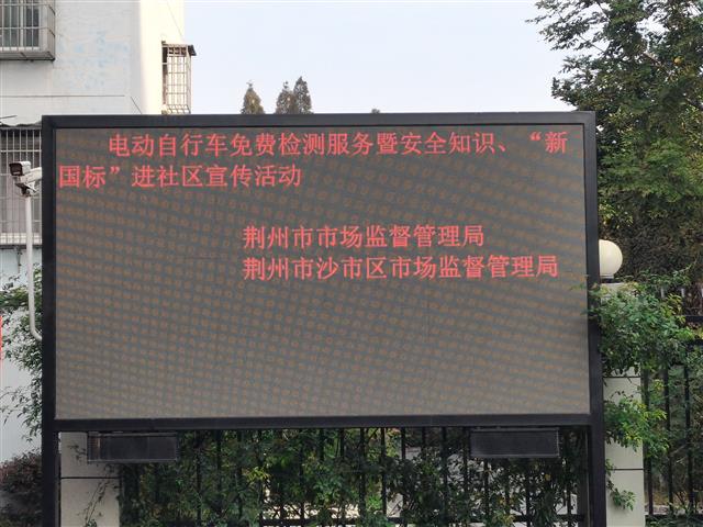 荆州市市场监督管理局产品质量安全监督管理科科长 王玲:“我们电动车整治工作一方面要严厉打击销售不标准的电动自行车,另一方面,我们还要为各大消费者做“新国标”宣传,免费检测服务,来提升群众的满意度。”