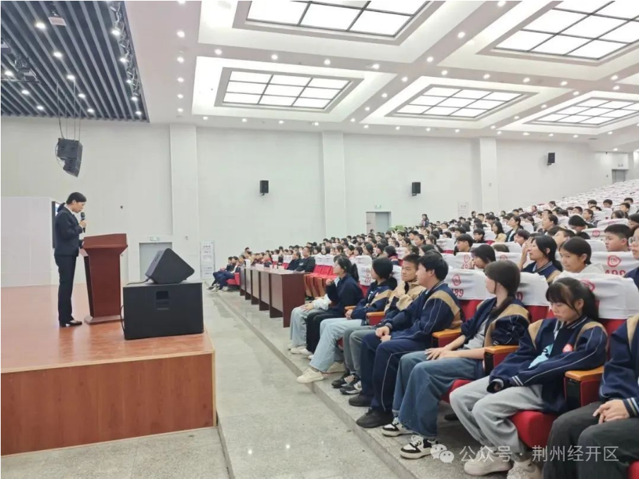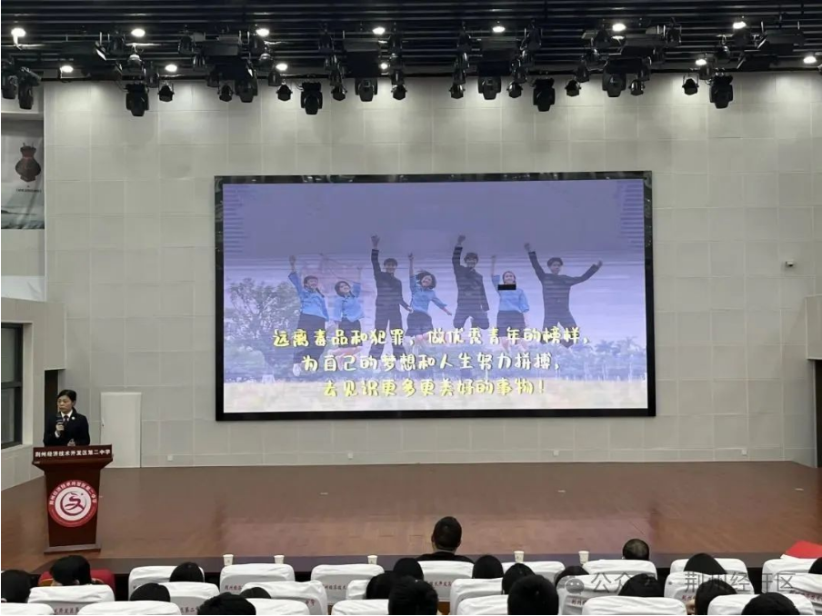 11月15日下午,荆州经开区第二中学联合荆州市人民检察院,为学校初中部全体师生带来一场以“法护少年 与法同行”为主题的法治专题讲座。
