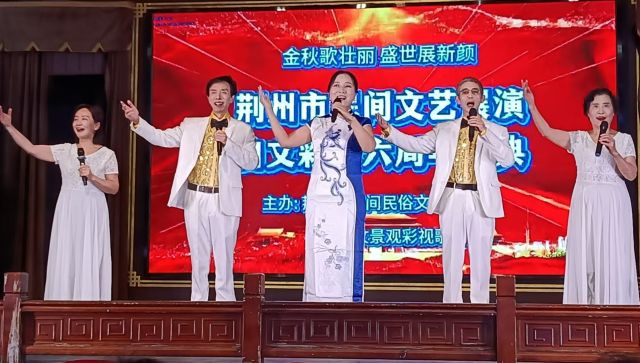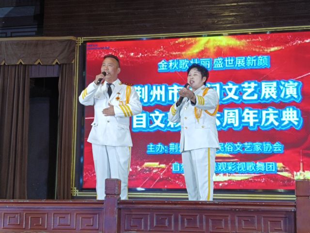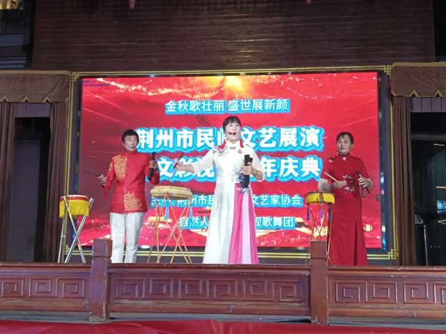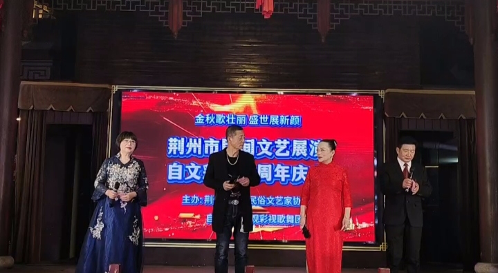 11月22日晚上,由荆州市民间民俗文艺家协会和自然人文景观彩视歌舞团主办的“金秋歌壮丽 盛世展新颜”荆州民间文艺展演暨自然人文彩视群六周年庆典于在荆街举办。